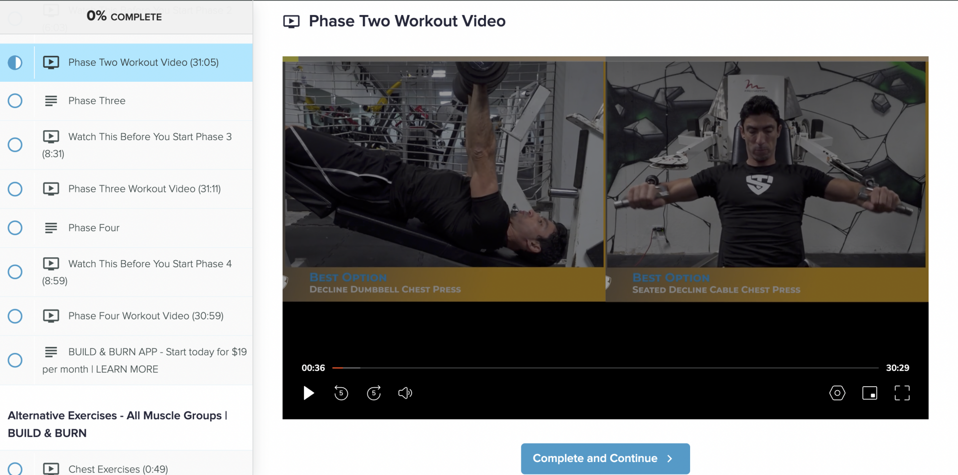 Complete demonstration of all the 4 workout phases (Alternatives are also included)